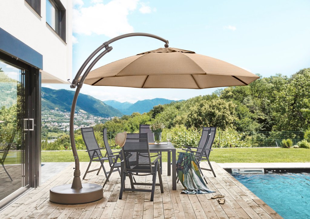 •As the pole is located at a part, you find quite an level of free space under this umbrella. Consequently, you are able to cover playpens, hot tubs along with elaborate sitting arrangement with one. •An offset umbrella can tilt to the maximum and also rotate full 360 degrees. As result, you can have the shade where you want it. •Additionally they come with many user-friendly mechanisms and so they’re easy to operate and store. •This umbrella looks quite smart and enhances the décor.